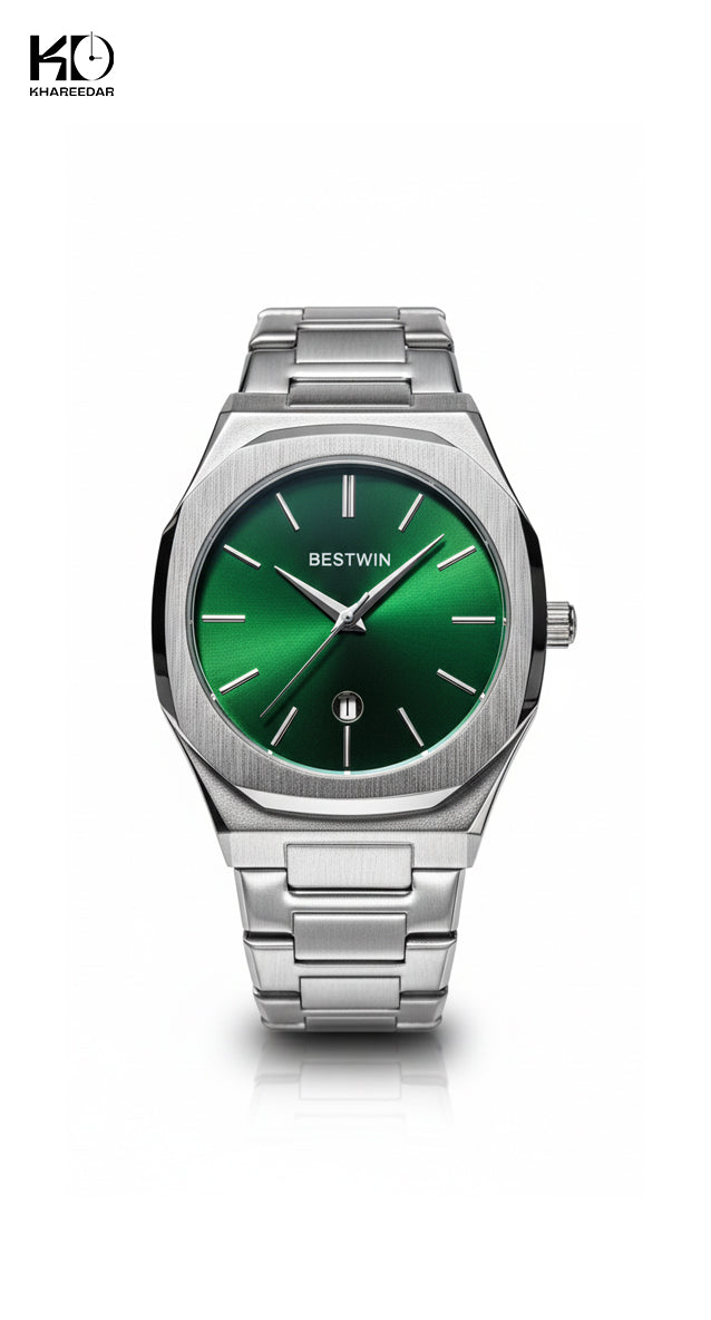 Embrace contemporary luxury with the Bestwin Zenith, a striking timepiece defined by its bold, integrated design and powerful aesthetic.